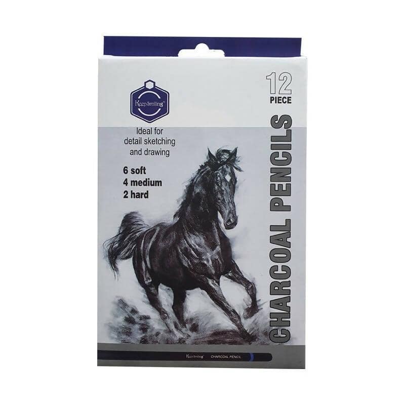 KEEP SMILING CHARCOAL PENCIL SET 12 INCLUDING SOFT | MEDIUM | HARD